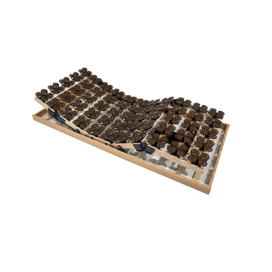 De Orthoflex elektrische bedbodem combineert natuurlijke materialen met modern comfort. Deze hoogwaardige bedbodem is vervaardigd uit massief berkenhout en voorzien van duurzame plaatveren met een speciale houtvezelhoudende samenstelling, waardoor de bodem zich soepel en nauwkeurig aanpast aan de contouren van je lichaam.