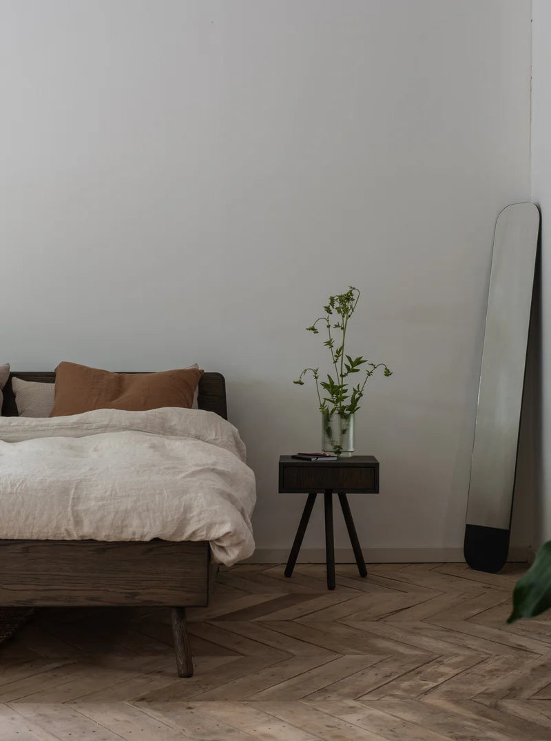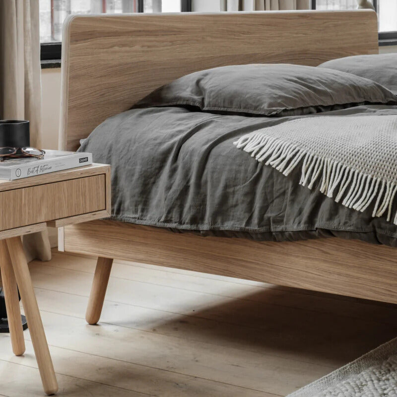 Het bed Basket van Loof heeft door zijn schuine pootjes en minimalistische design een Scandinavische uitstraling. De belijning van het hoofdbord geeft het bed een speelse en bijzondere uitstraling. Het bed is gemaakt van multiplex, oftewel gelaagd berken, met een hoogwaardig eiken fineer. De combinatie van het grafische effect van het multiplex en de structuur van het eiken fineer zorgt voor en genuanceerd lijnenspel. Het bed wordt afgewerkt met een natuurlijke olie.